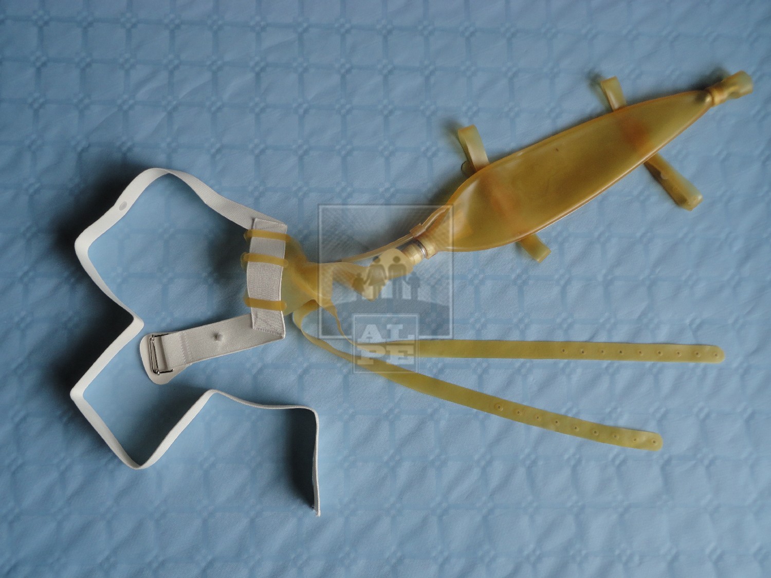 All parts in contact with the skin, made of natural soft rubber or PVC, normally not cause reactions or irritations. Treating the correct tensioning of the belt and laces. To avoid leakages, prior to use check the correct connection and fixing of the bag with the primary container and the closure of the exhaust valve. It is recommended to have an accurate hygiene of the skin affected by contact with the device and a periodic washing of the same.
